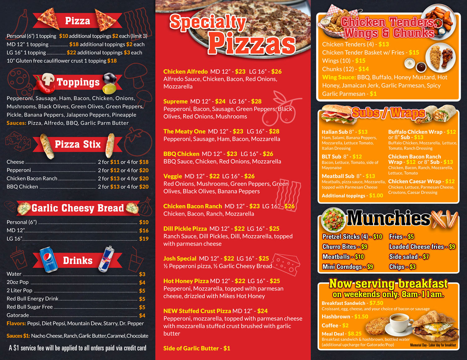 We put out stellar pizzas by using fresh ingredients, an amazing sauce and the best dough available. Our triple deck conveyor style oven is able to put out over 300 pizzas per hour, so there is less wait time from the time you place your order until you are consuming the island's best pizza.